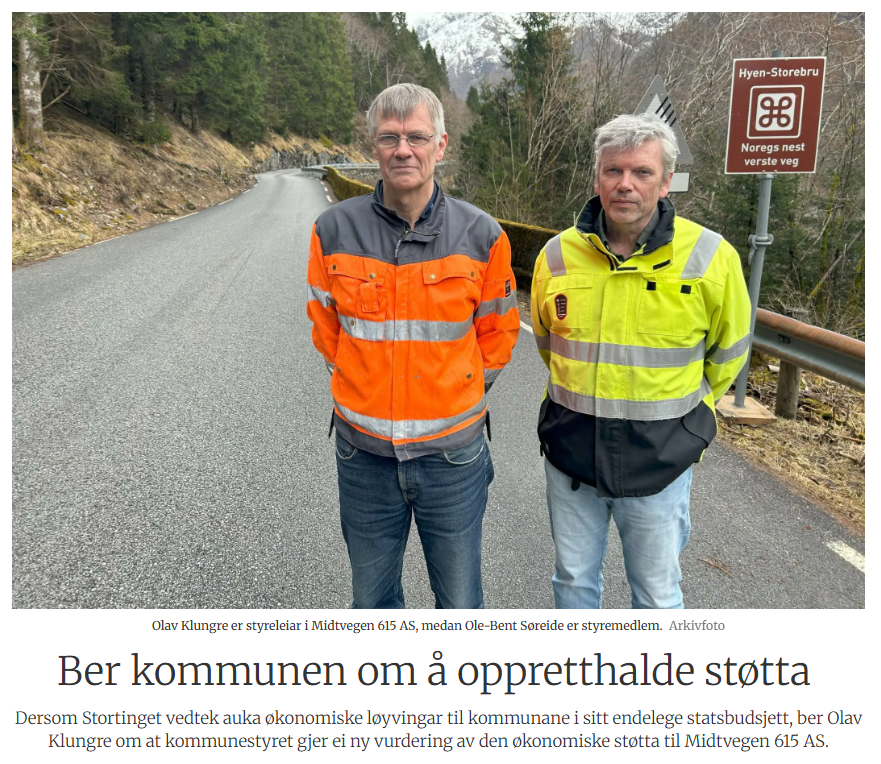Samrøystes vedtak om fornya støtte til Midtvegen 615 AS